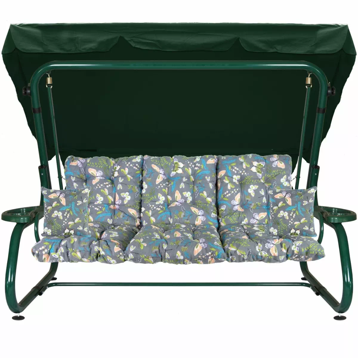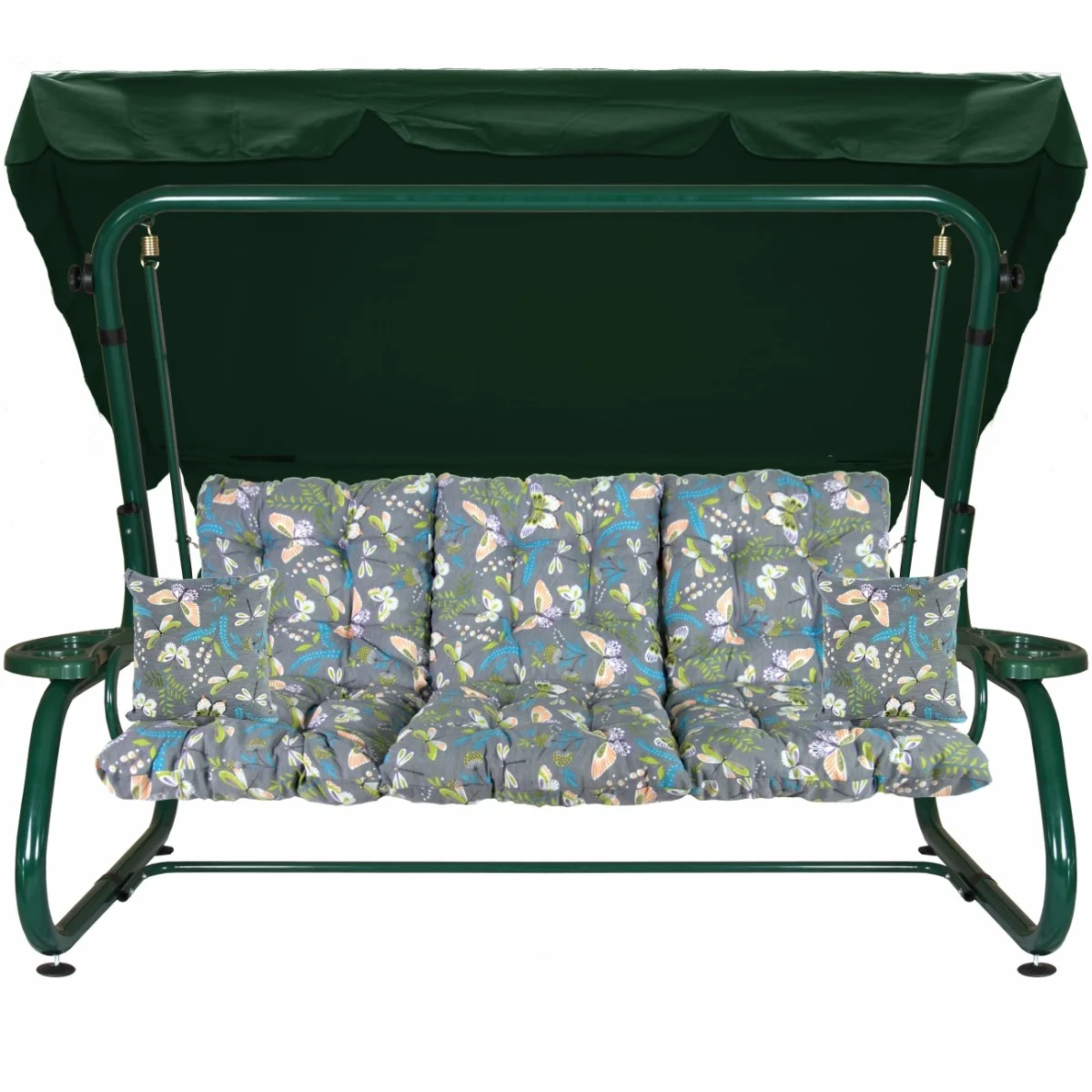 Na siedzisku i oparciu zamontowano system sprężyn z płaskownikami (ocynk), który zapewnia komfort wypoczynku i długotrwałe użytkowanie huśtawki.