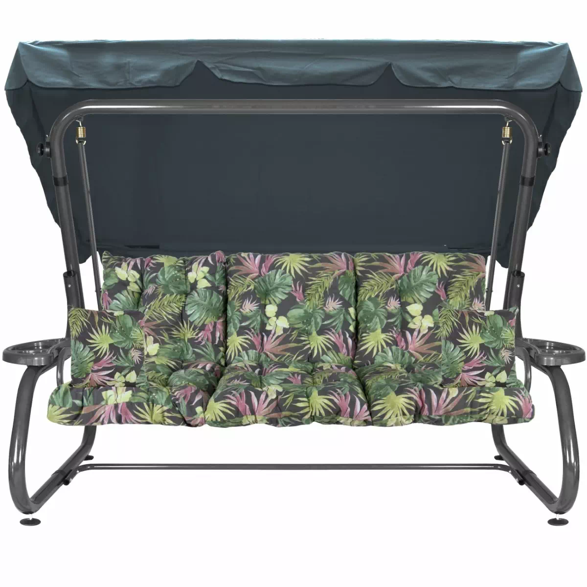 Na siedzisku i oparciu zamontowano system sprężyn z płaskownikami (ocynk), który zapewnia komfort wypoczynku i długotrwałe użytkowanie huśtawki.