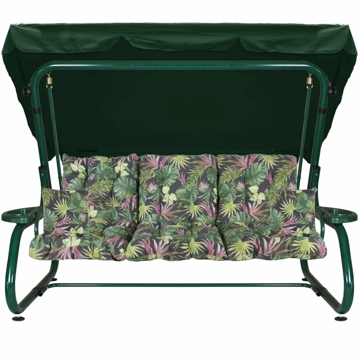 Na siedzisku i oparciu zamontowano system sprężyn z płaskownikami (ocynk), który zapewnia komfort wypoczynku i długotrwałe użytkowanie huśtawki.