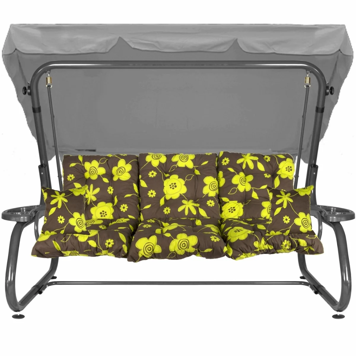 Na siedzisku i oparciu zamontowano system sprężyn z płaskownikami (ocynk), który zapewnia komfort wypoczynku i długotrwałe użytkowanie huśtawki.