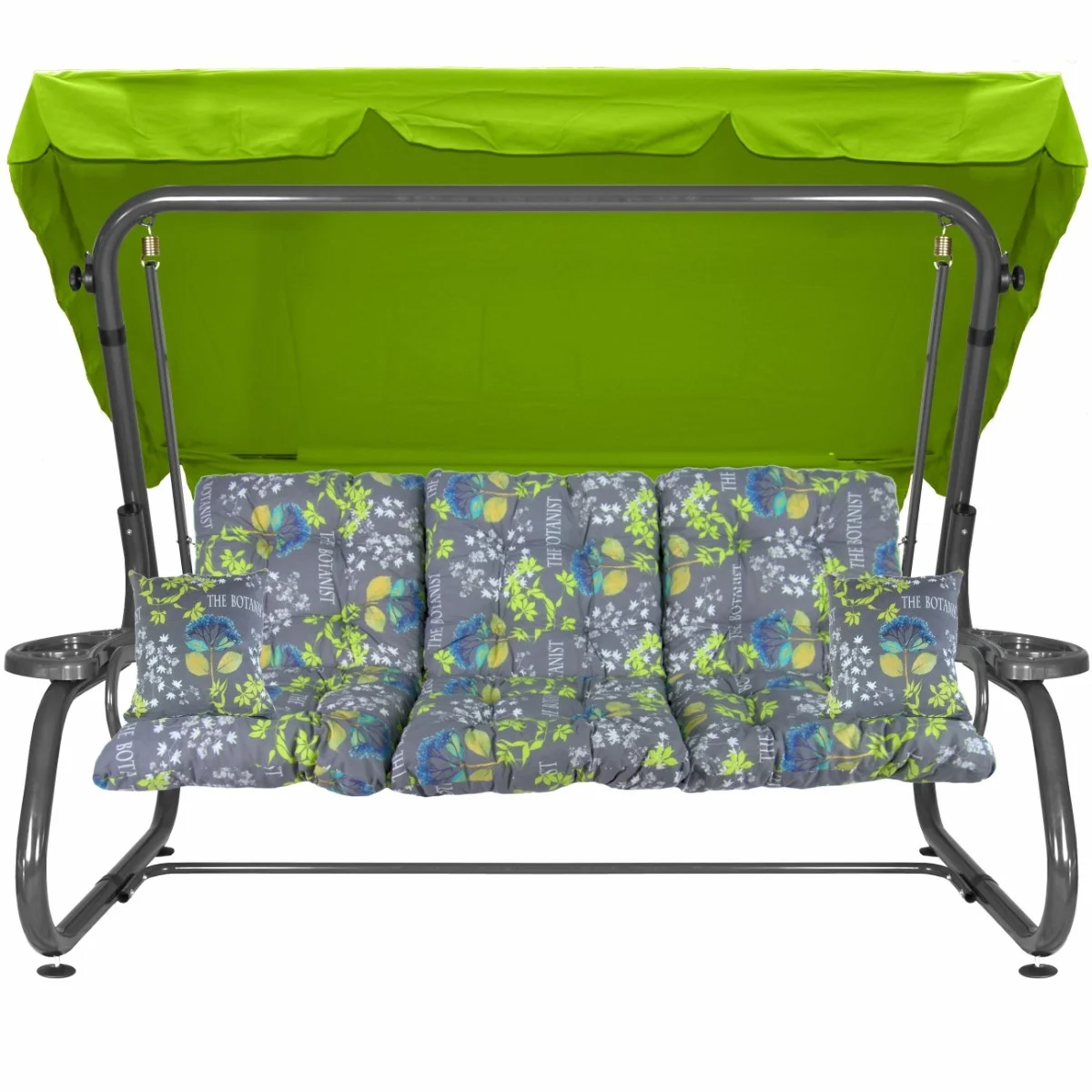 Na siedzisku i oparciu zamontowano system sprężyn z płaskownikami (ocynk), który zapewnia komfort wypoczynku i długotrwałe użytkowanie huśtawki.