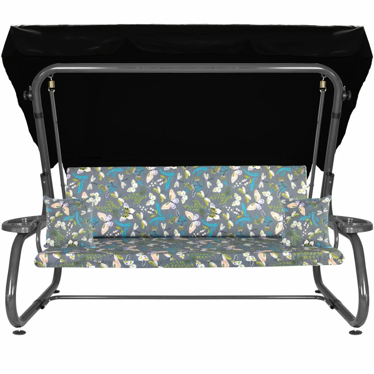 Na siedzisku i oparciu zamontowano system sprężyn z płaskownikami (ocynk), który zapewnia komfort wypoczynku i długotrwałe użytkowanie huśtawki.