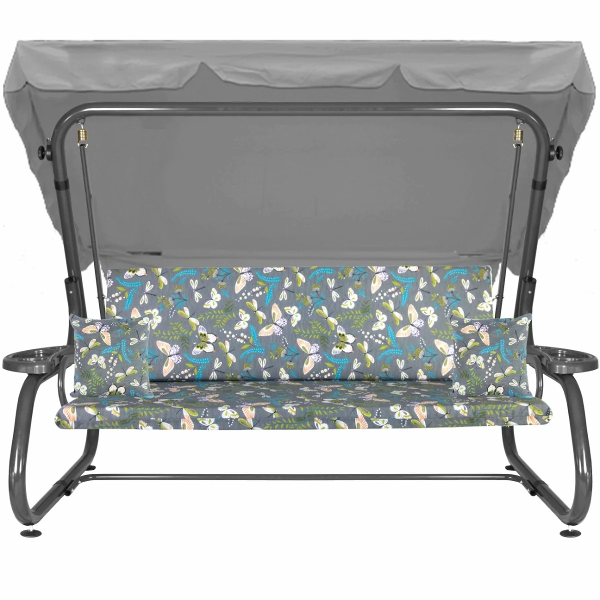 Na siedzisku i oparciu zamontowano system sprężyn z płaskownikami (ocynk), który zapewnia komfort wypoczynku i długotrwałe użytkowanie huśtawki.