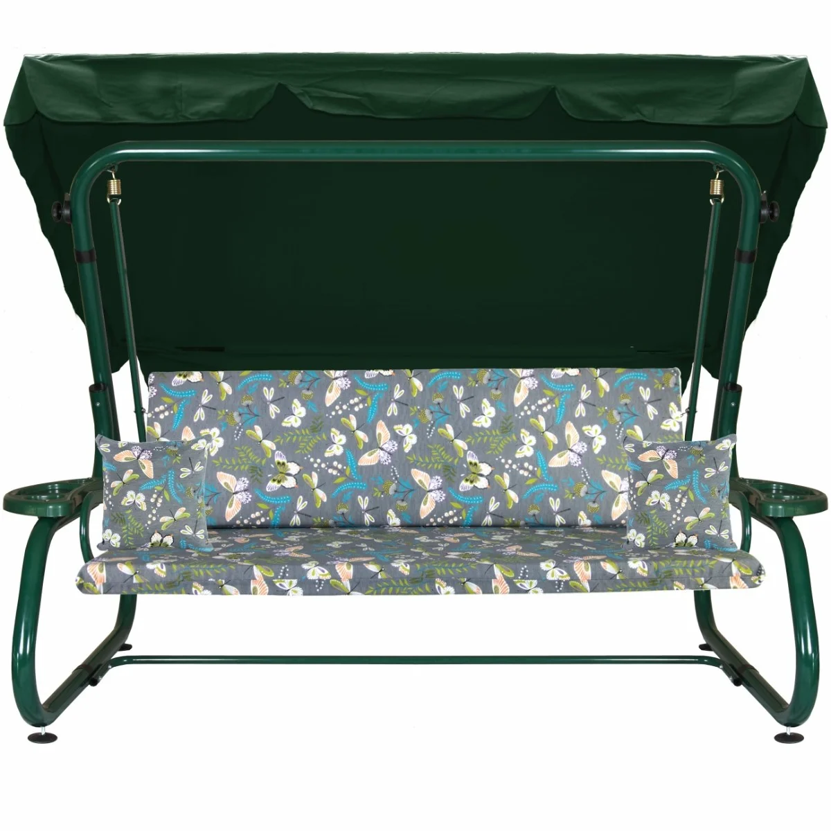 Na siedzisku i oparciu zamontowano system sprężyn z płaskownikami (ocynk), który zapewnia komfort wypoczynku i długotrwałe użytkowanie huśtawki.