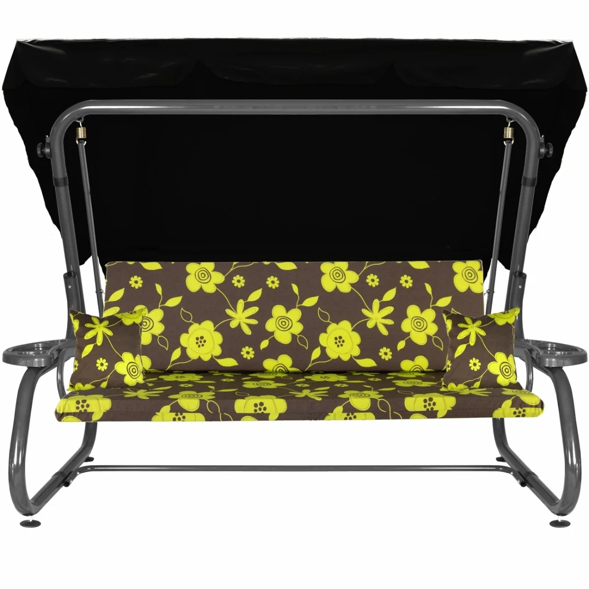 Na siedzisku i oparciu zamontowano system sprężyn z płaskownikami (ocynk), który zapewnia komfort wypoczynku i długotrwałe użytkowanie huśtawki.