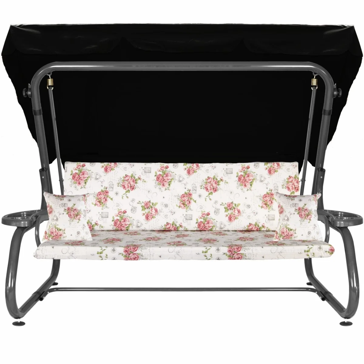 Na siedzisku i oparciu zamontowano system sprężyn z płaskownikami (ocynk), który zapewnia komfort wypoczynku i długotrwałe użytkowanie huśtawki.