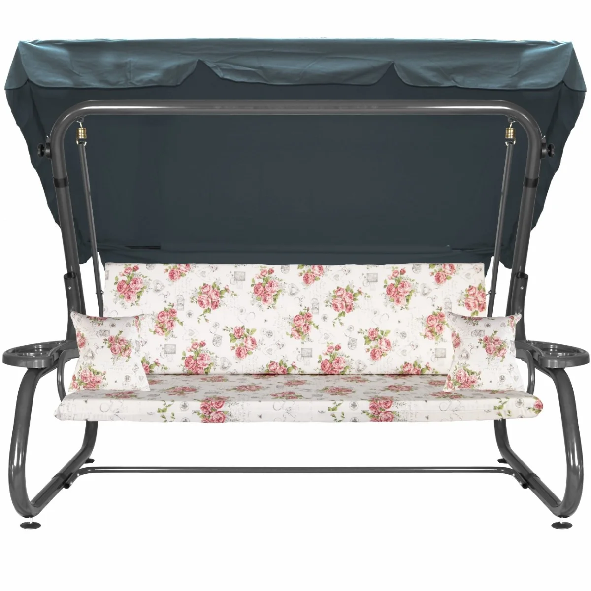 Na siedzisku i oparciu zamontowano system sprężyn z płaskownikami (ocynk), który zapewnia komfort wypoczynku i długotrwałe użytkowanie huśtawki.