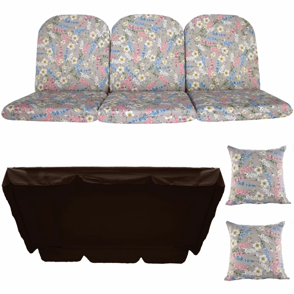 Zestaw KOMFORT na Huśtawkę Ogrodową Poduchy 180cm + 2 Jaśki + Daszek 120X214