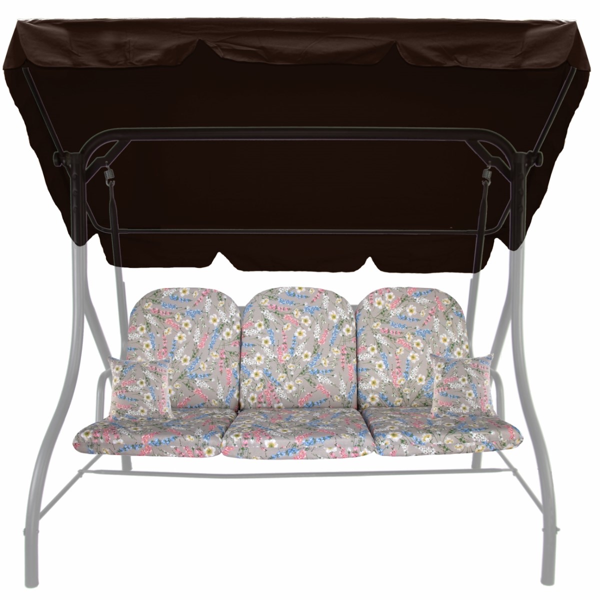 Zestaw KOMFORT na Huśtawkę Ogrodową Poduchy 150cm + 2 Jaśki + Daszek 120X180