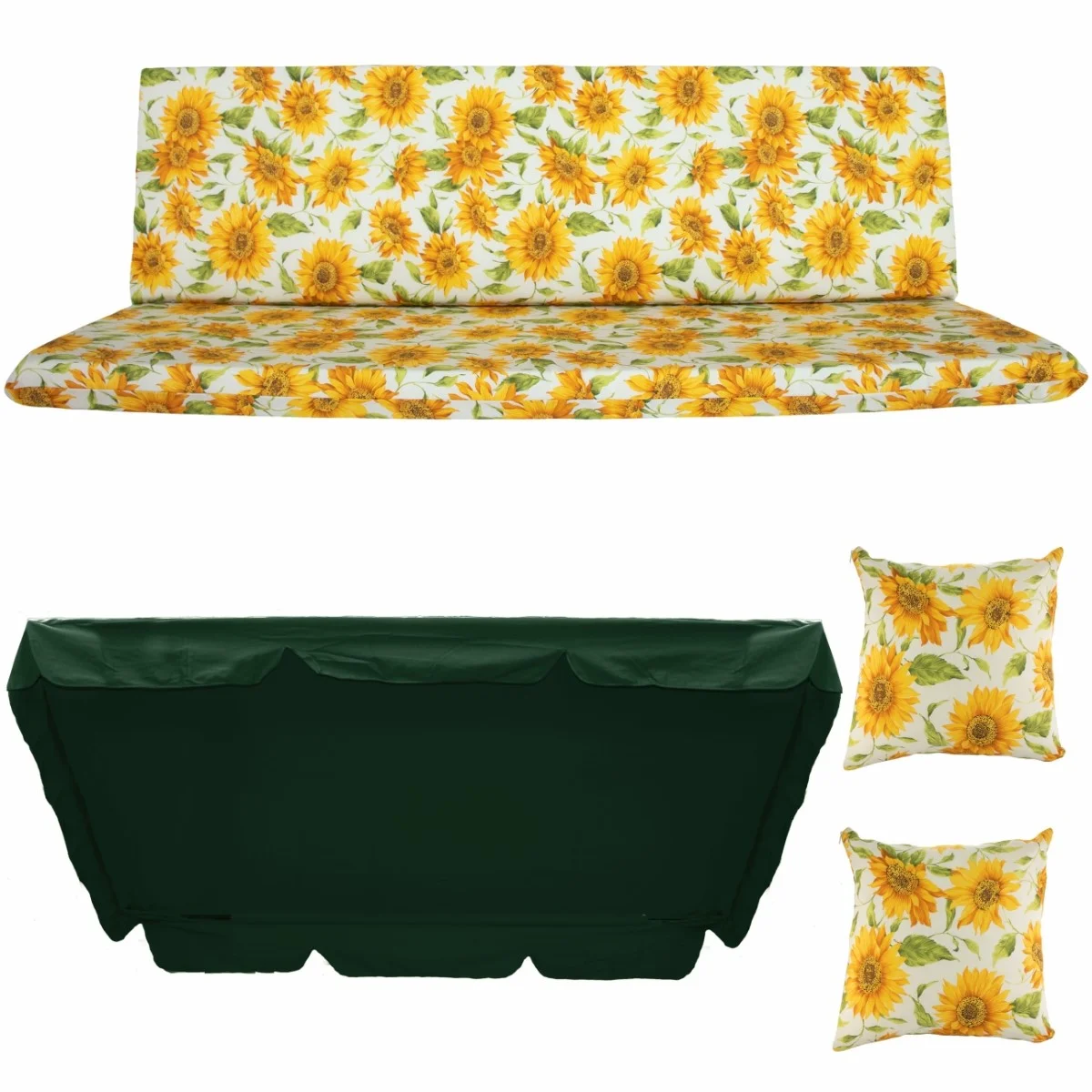 Zestaw TORINO na Huśtawkę Ogrodową Poduchy 180cm + 2 Jaśki + Daszek 120X214