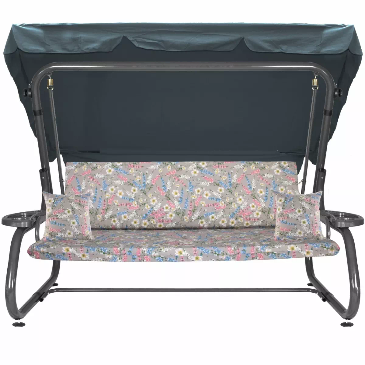 Huśtawka wyposażona w 2 półeczki, na których można postawić swoją ulubioną książkę, napój, przekąskę.