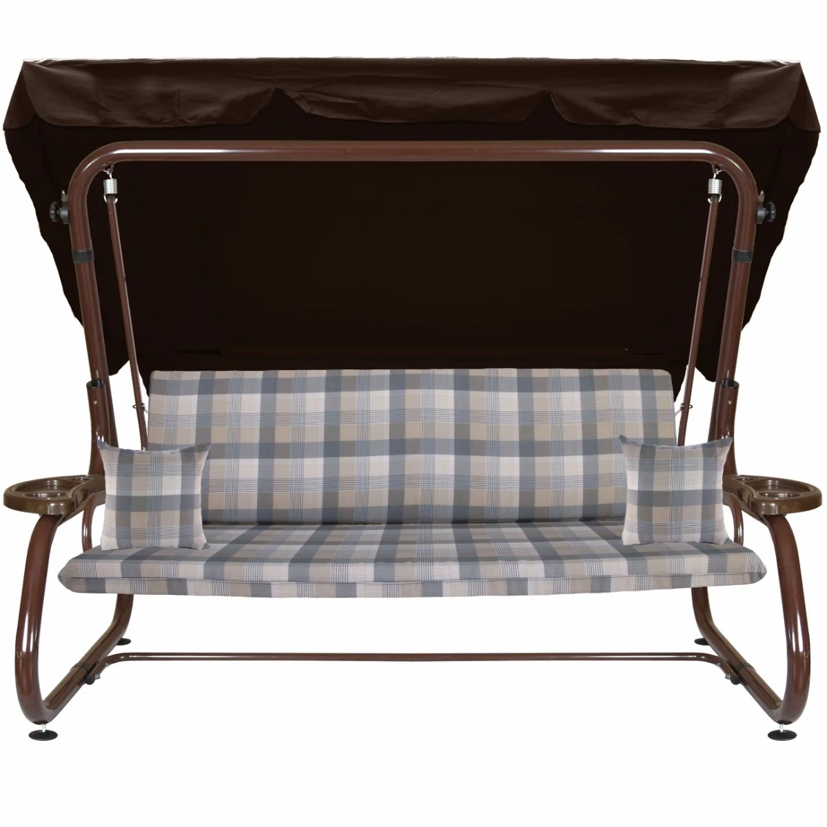 Na siedzisku i oparciu zamontowano system sprężyn z płaskownikami (ocynk), który zapewnia komfort wypoczynku i długotrwałe użytkowanie huśtawki.