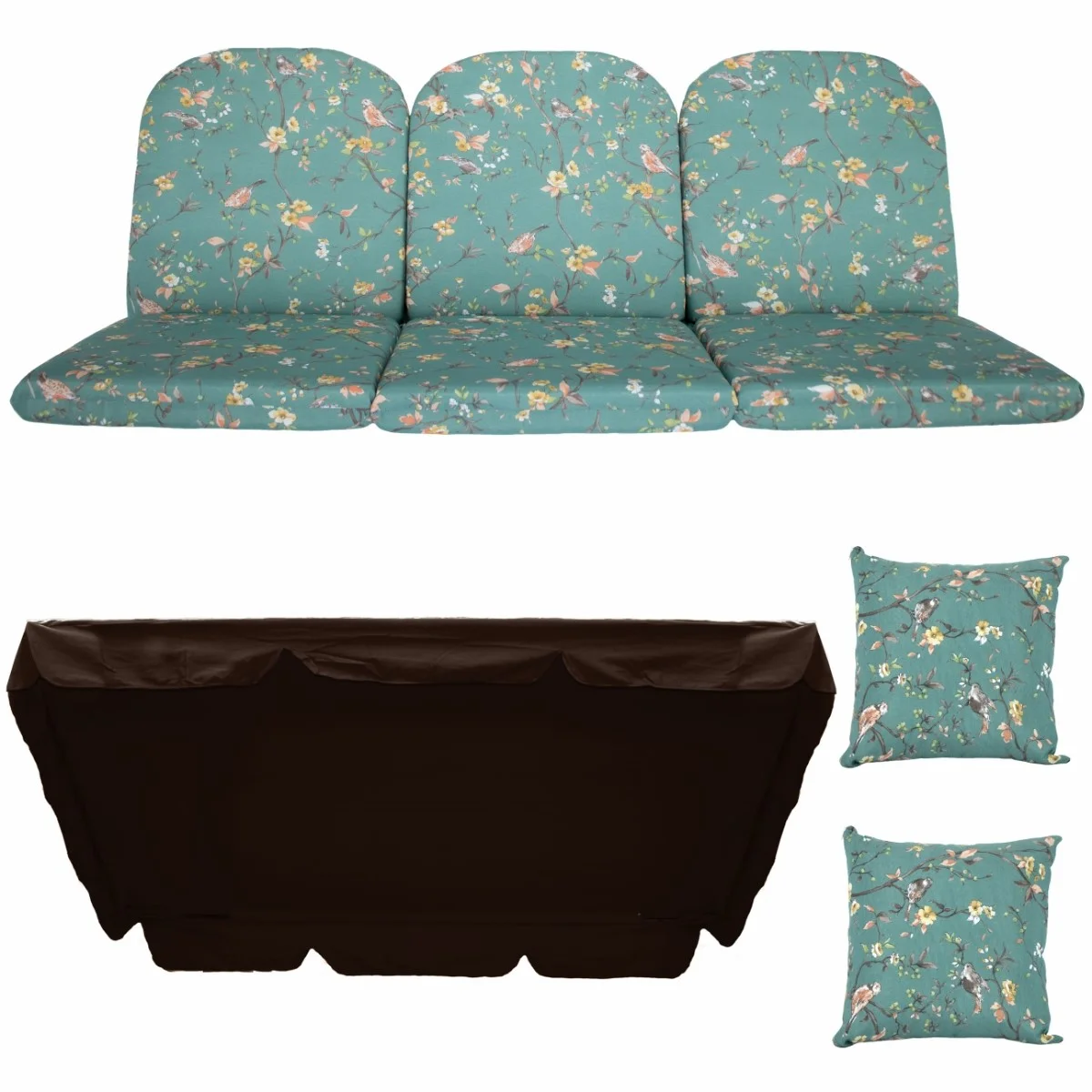 Zestaw KOMFORT na Huśtawkę Ogrodową Poduchy 150cm + 2 Jaśki + Daszek 120X180