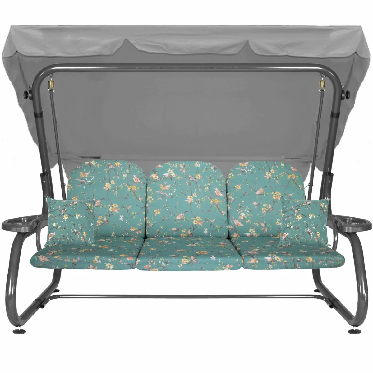Na siedzisku i oparciu zamontowano system sprężyn z płaskownikami (ocynk), który zapewnia komfort wypoczynku i długotrwałe użytkowanie huśtawki.