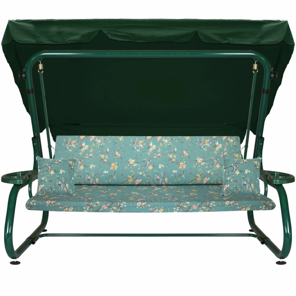 Na siedzisku i oparciu zamontowano system sprężyn z płaskownikami (ocynk), który zapewnia komfort wypoczynku i długotrwałe użytkowanie huśtawki.