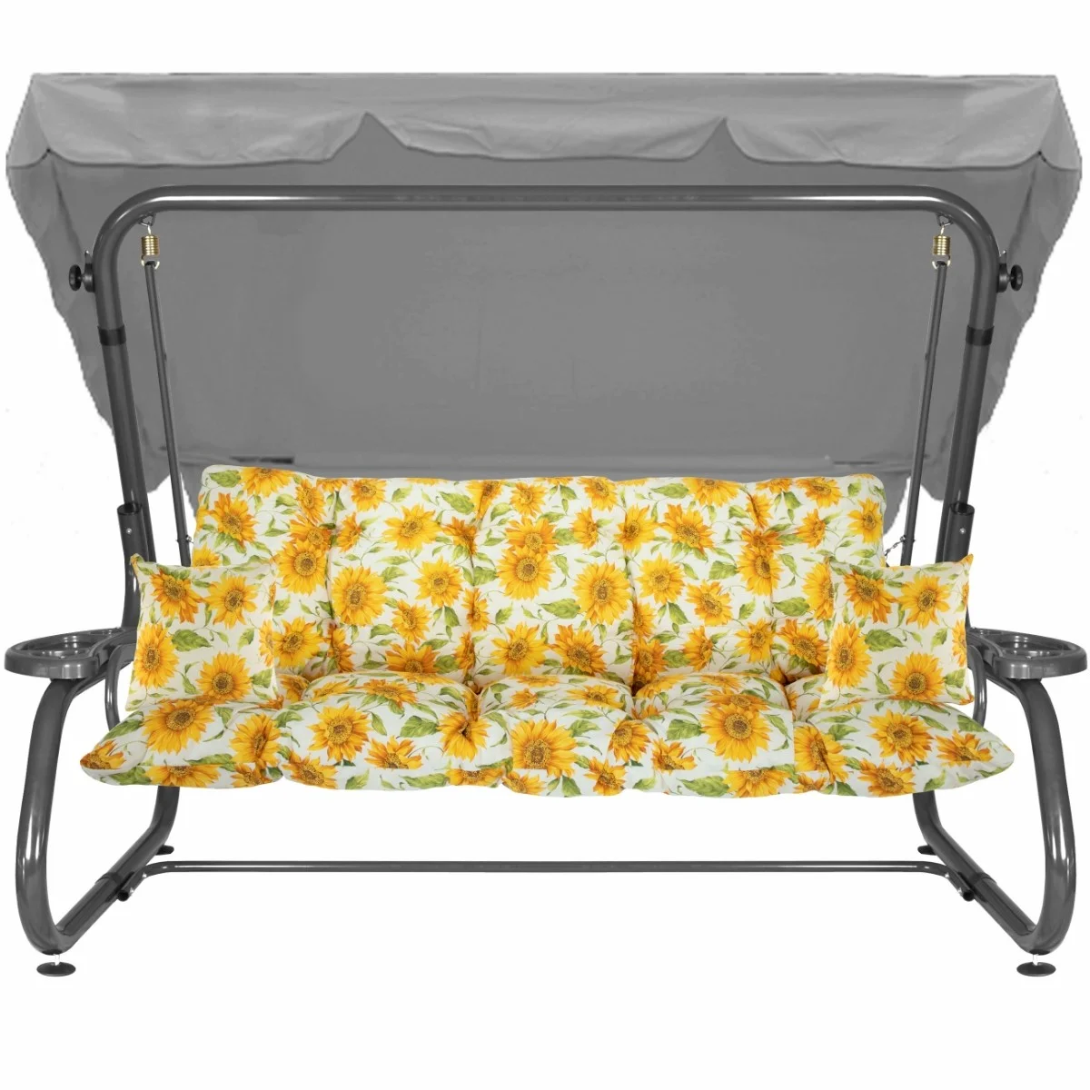 Na siedzisku i oparciu zamontowano system sprężyn z płaskownikami (ocynk), który zapewnia komfort wypoczynku i długotrwałe użytkowanie huśtawki.