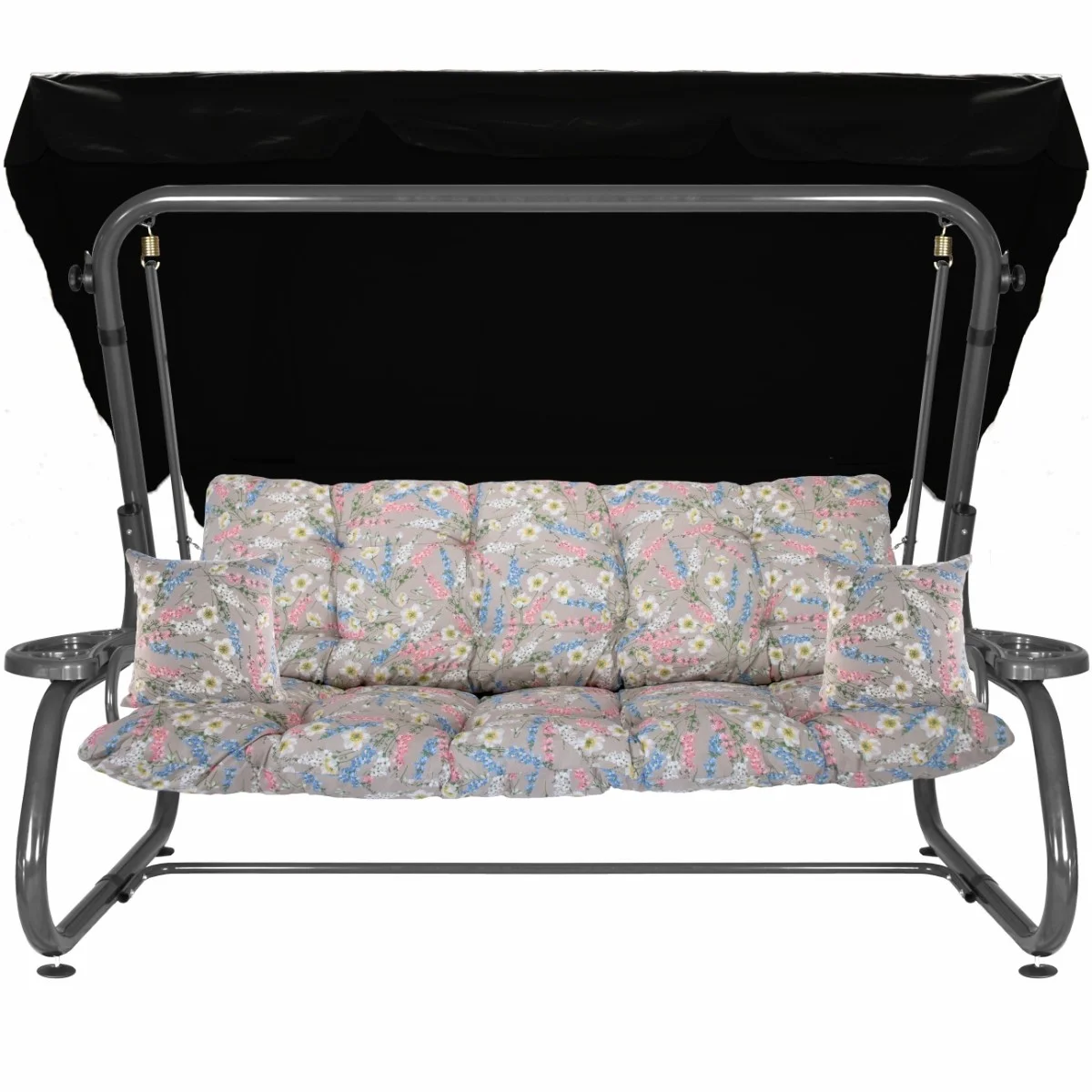 Na siedzisku i oparciu zamontowano system sprężyn z płaskownikami (ocynk), który zapewnia komfort wypoczynku i długotrwałe użytkowanie huśtawki.