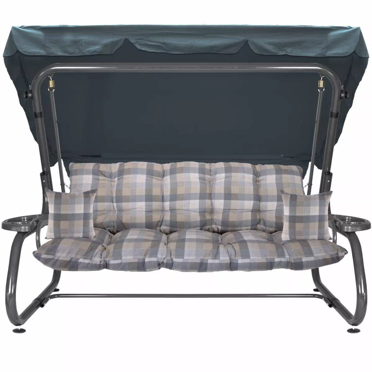 Na siedzisku i oparciu zamontowano system sprężyn z płaskownikami (ocynk), który zapewnia komfort wypoczynku i długotrwałe użytkowanie huśtawki.
