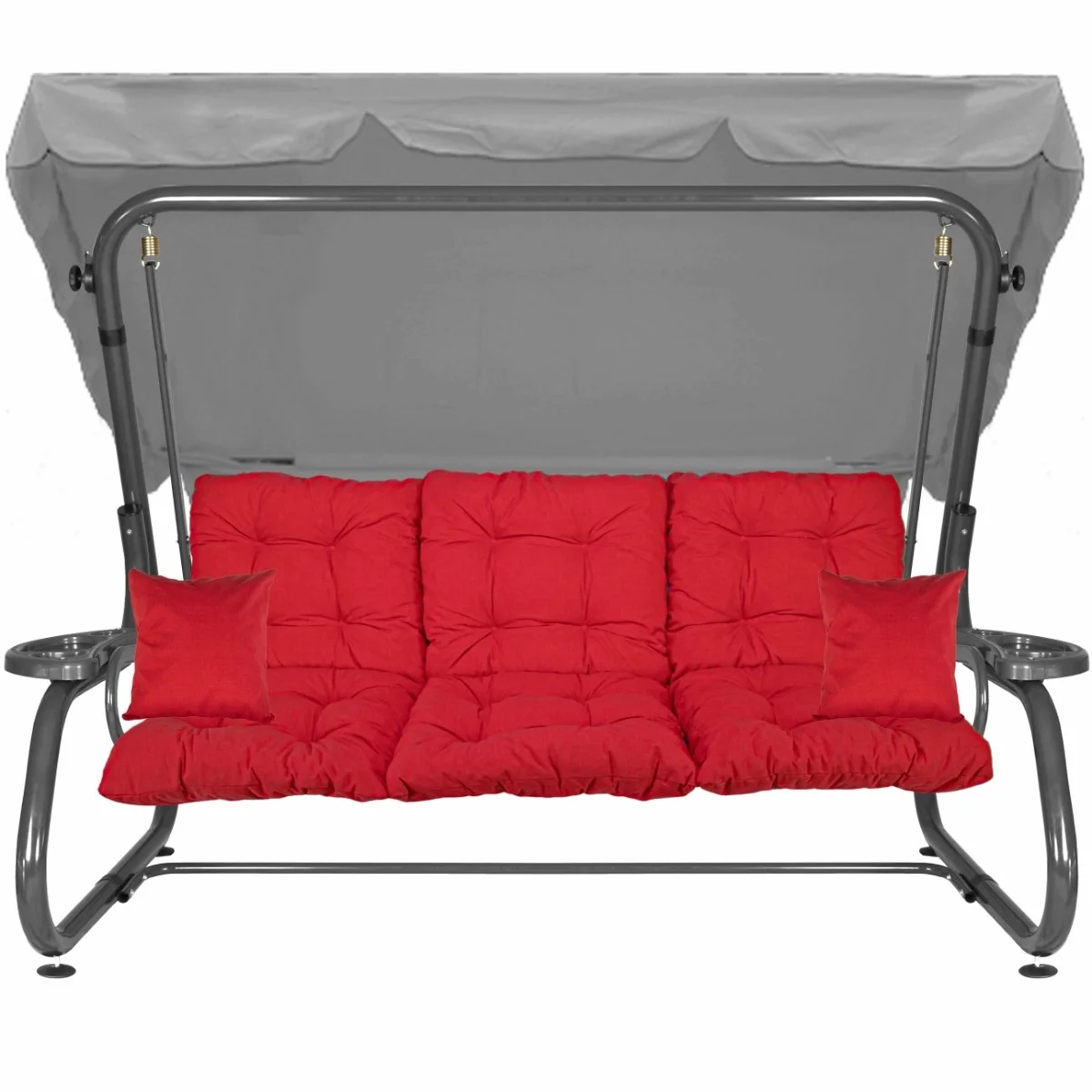 Na siedzisku i oparciu zamontowano system sprężyn z płaskownikami (ocynk), który zapewnia komfort wypoczynku i długotrwałe użytkowanie huśtawki.