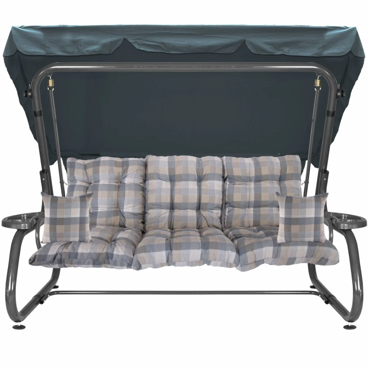 Na siedzisku i oparciu zamontowano system sprężyn z płaskownikami (ocynk), który zapewnia komfort wypoczynku i długotrwałe użytkowanie huśtawki.