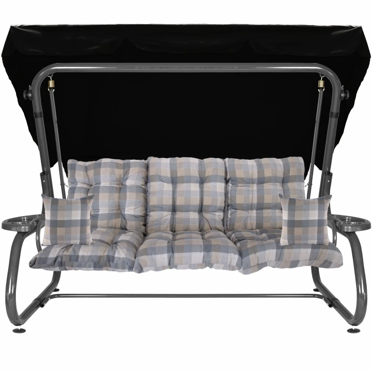 Na siedzisku i oparciu zamontowano system sprężyn z płaskownikami (ocynk), który zapewnia komfort wypoczynku i długotrwałe użytkowanie huśtawki.
