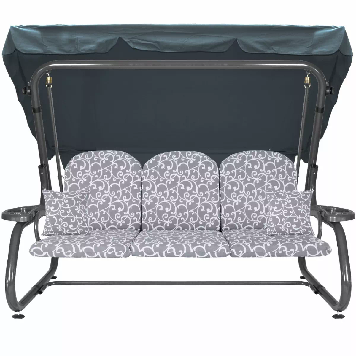 Na siedzisku i oparciu zamontowano system sprężyn z płaskownikami (ocynk), który zapewnia komfort wypoczynku i długotrwałe użytkowanie huśtawki.