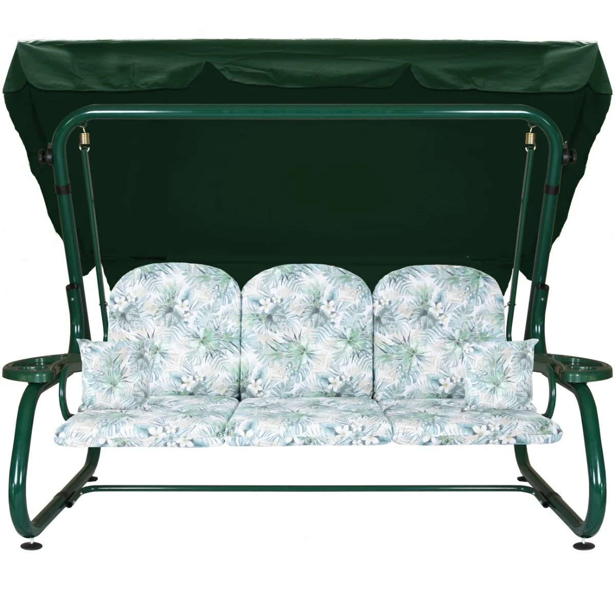 Na siedzisku i oparciu zamontowano system sprężyn z płaskownikami (ocynk), który zapewnia komfort wypoczynku i długotrwałe użytkowanie huśtawki.