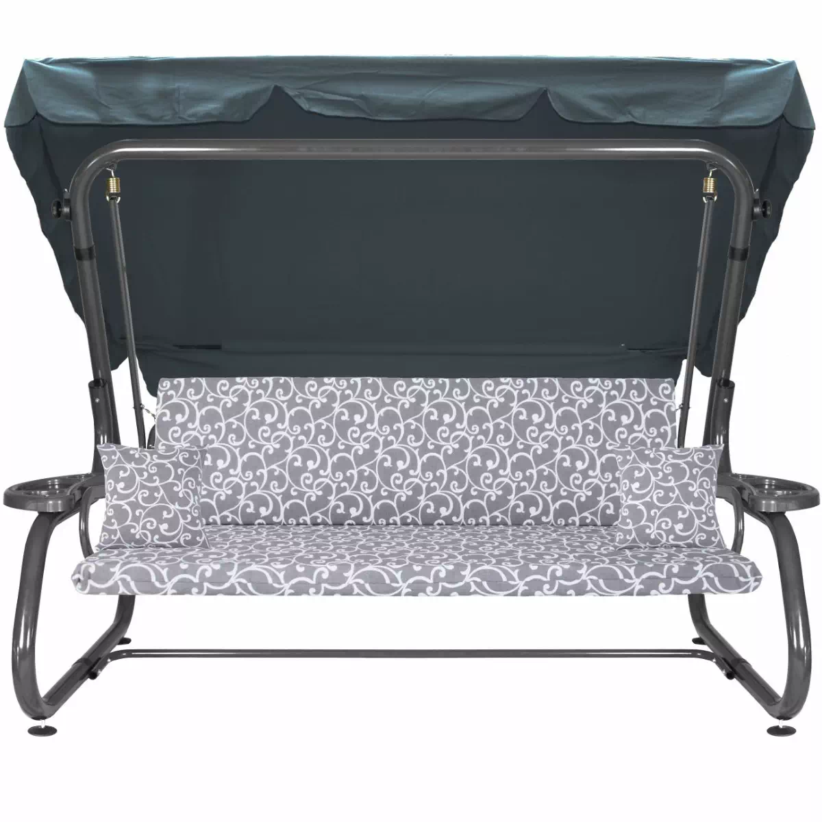 Na siedzisku i oparciu zamontowano system sprężyn z płaskownikami (ocynk), który zapewnia komfort wypoczynku i długotrwałe użytkowanie huśtawki.
