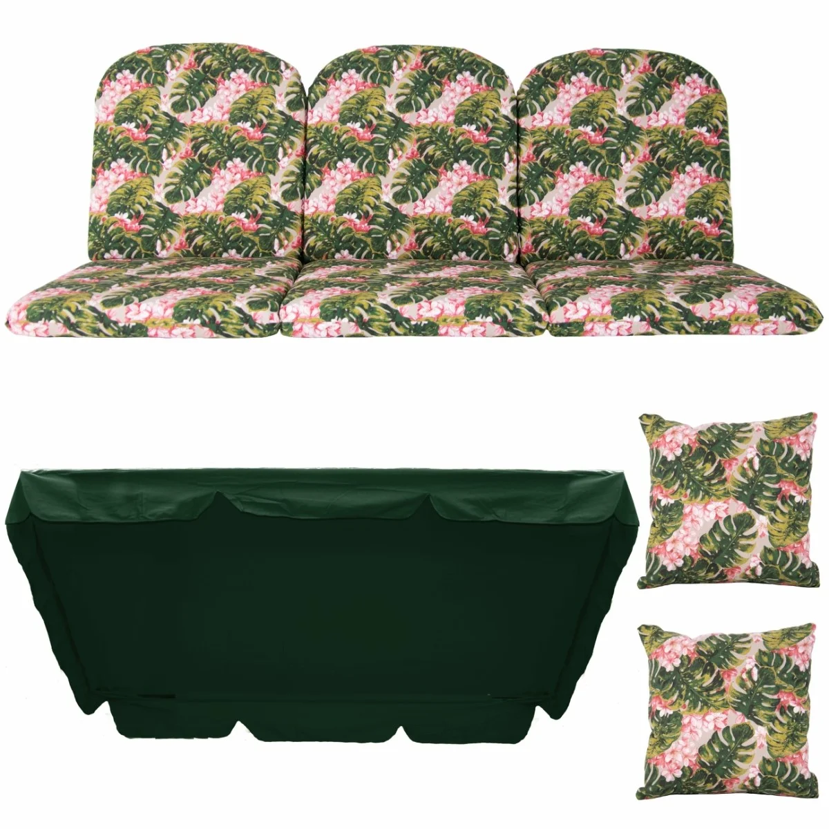 Zestaw KOMFORT na Huśtawkę Ogrodową Poduchy 180cm + 2 Jaśki + Daszek 120X214