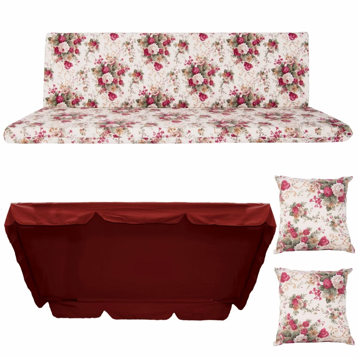 Zestaw TORINO na Huśtawkę Ogrodową Poduchy 180cm + 2 Jaśki + Daszek 120X214