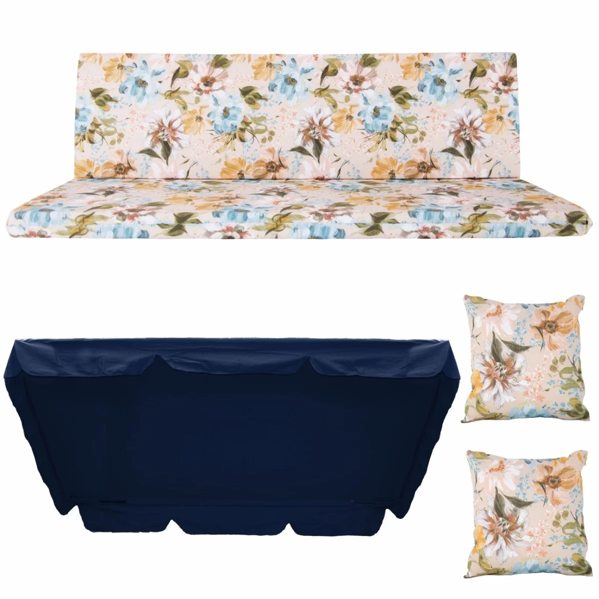 Zestaw TORINO na Huśtawkę Ogrodową Poduchy 180cm + 2 Jaśki + Daszek 120X214