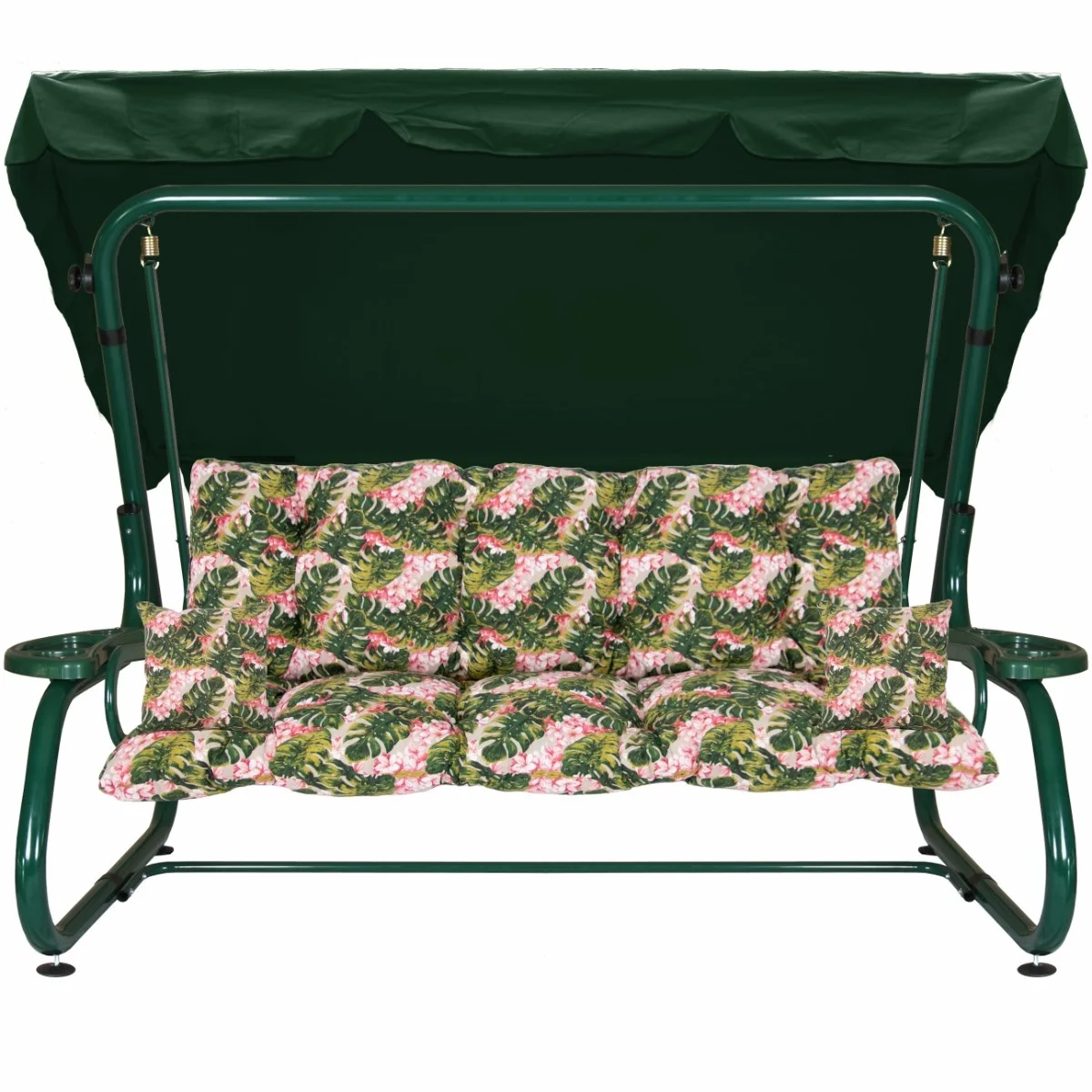 Na siedzisku i oparciu zamontowano system sprężyn z płaskownikami (ocynk), który zapewnia komfort wypoczynku i długotrwałe użytkowanie huśtawki.