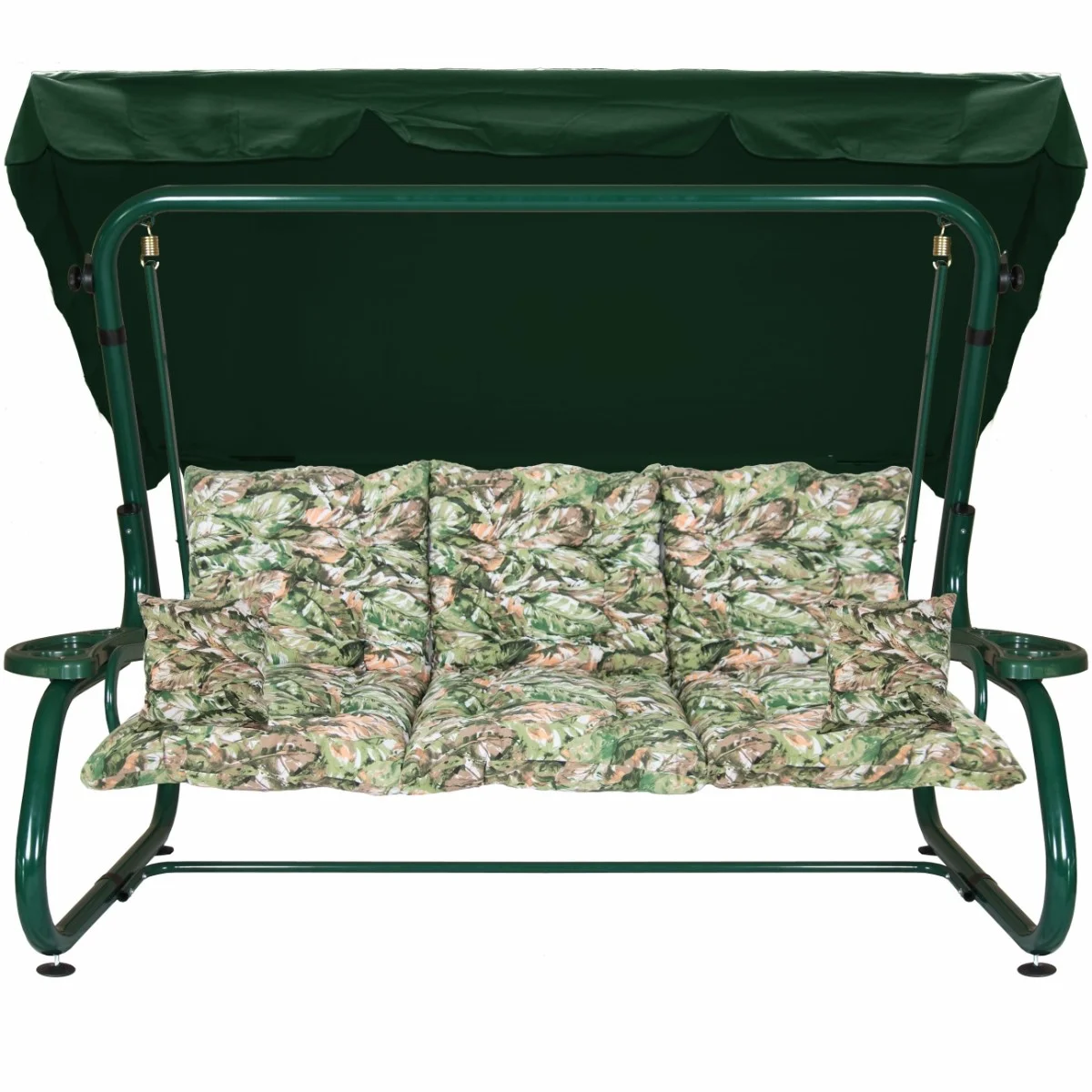 Na siedzisku i oparciu zamontowano system sprężyn z płaskownikami (ocynk), który zapewnia komfort wypoczynku i długotrwałe użytkowanie huśtawki.