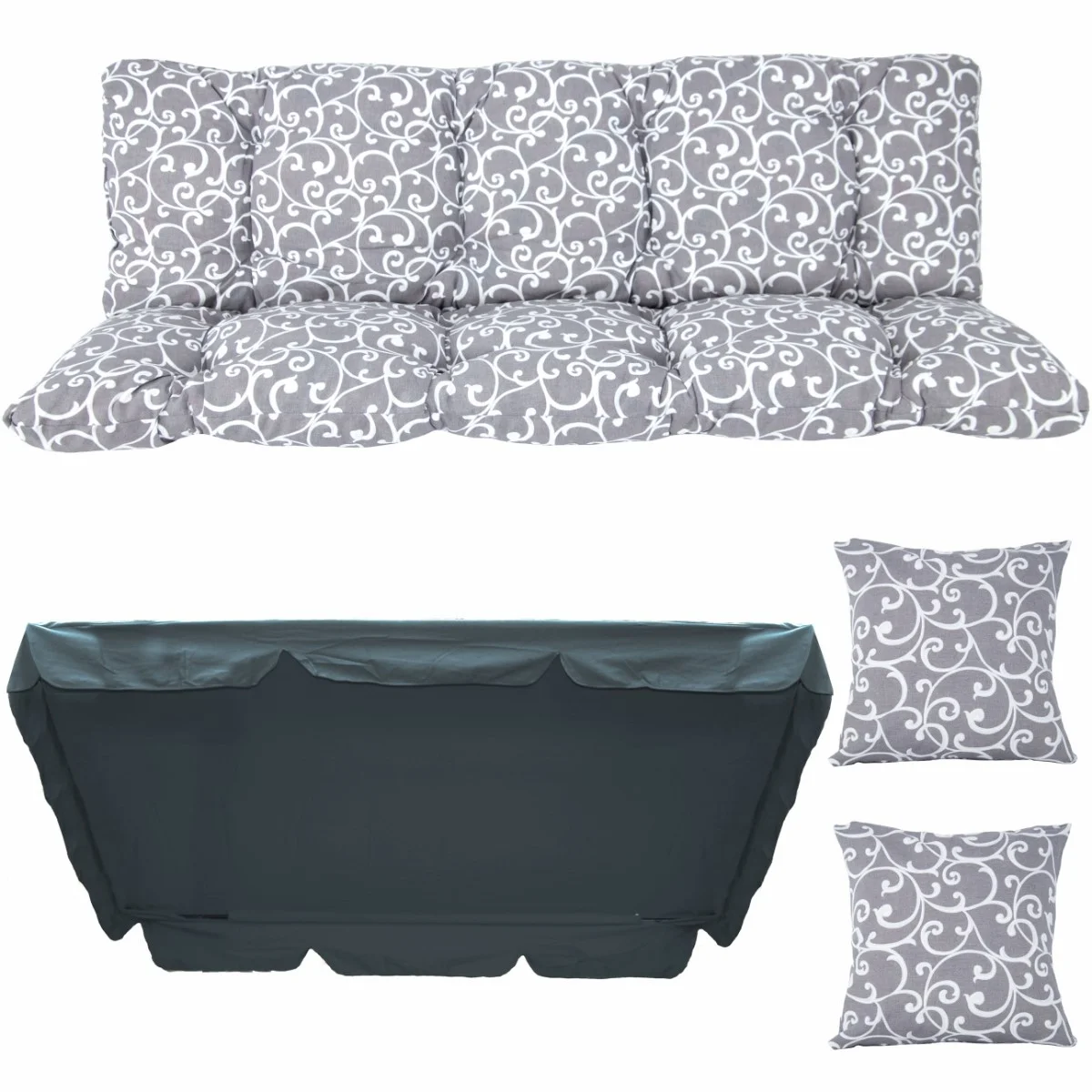 Zestaw na Huśtawkę Ogrodową Poduchy 150cm + 2 Jaśki + Daszek 120x180cm.