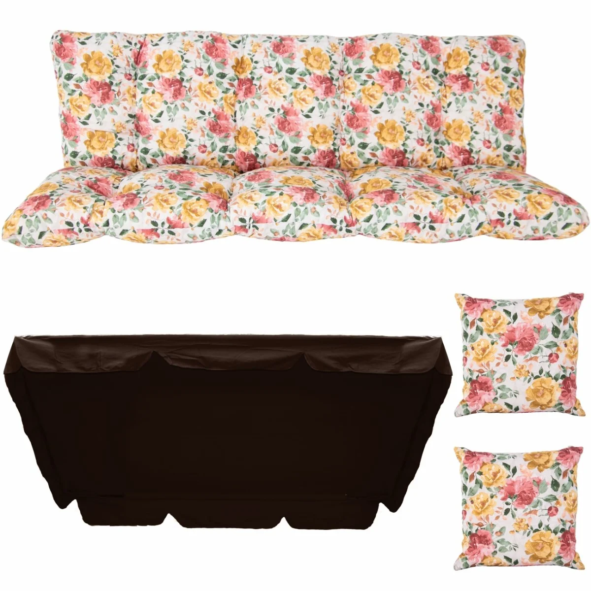 Zestaw na Huśtawkę Ogrodową Poduchy 150cm + 2 Jaśki + Daszek 120x180cm.