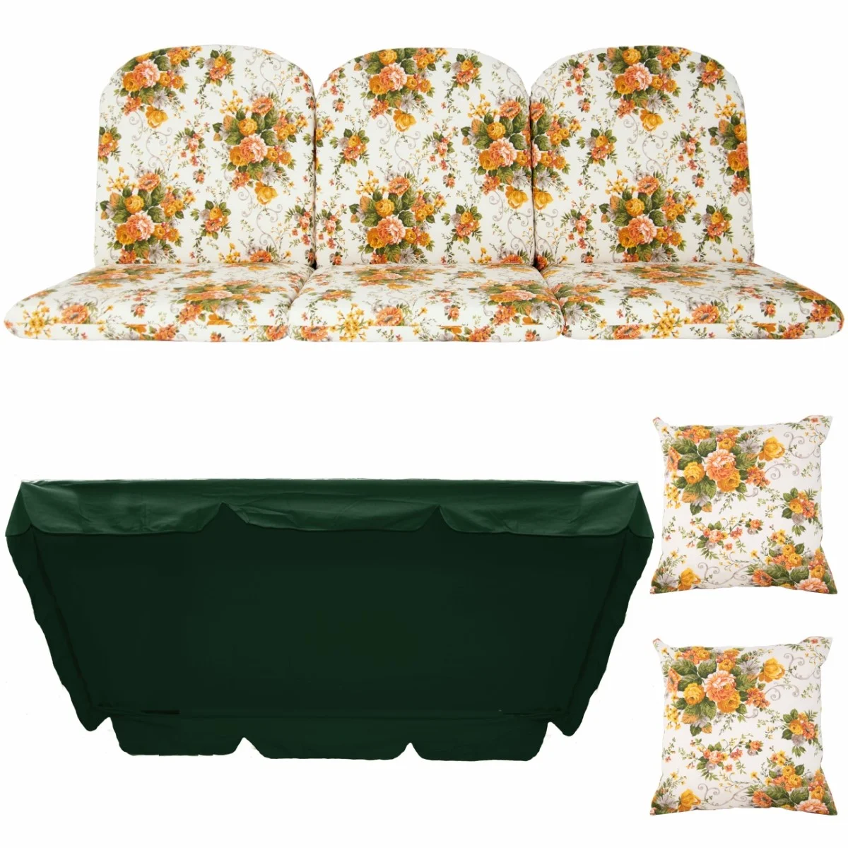 Zestaw KOMFORT na Huśtawkę Ogrodową Poduchy 150cm + 2 Jaśki + Daszek 120X180