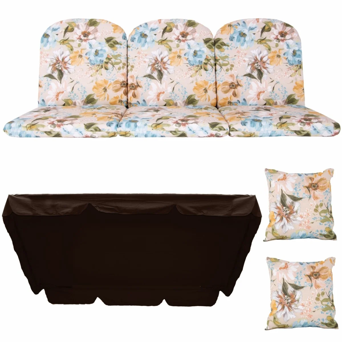 Zestaw KOMFORT na Huśtawkę Ogrodową Poduchy 150cm + 2 Jaśki + Daszek 120X180