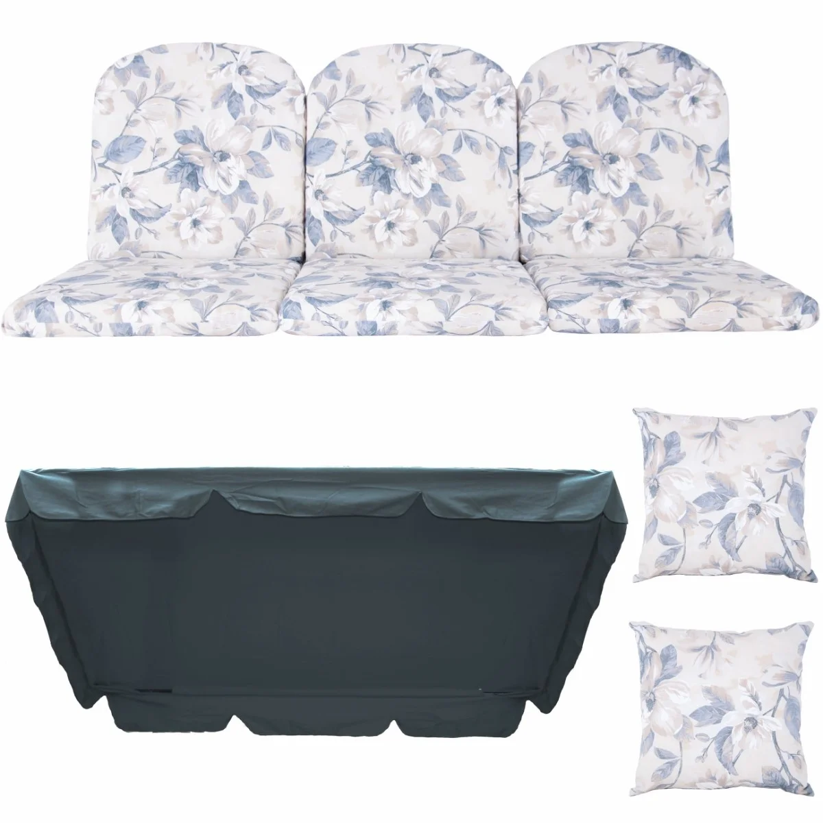 Zestaw KOMFORT na Huśtawkę Ogrodową Poduchy 150cm + 2 Jaśki + Daszek 120X180