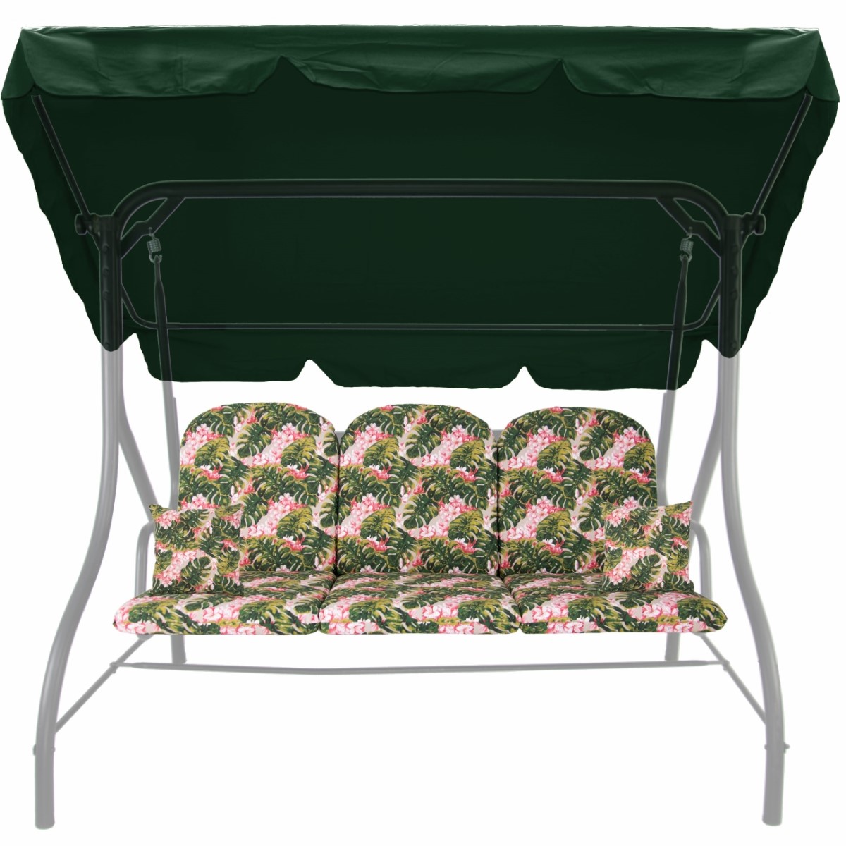 Zestaw KOMFORT na Huśtawkę Ogrodową Poduchy 150cm + 2 Jaśki + Daszek 120X180