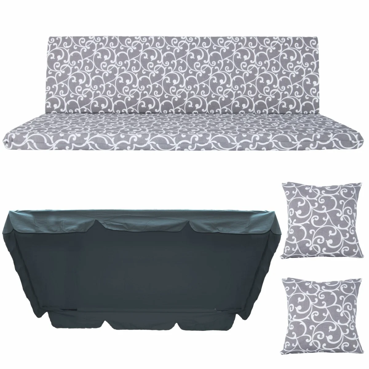 Zestaw TORINO na Huśtawkę Ogrodową Poduchy 150cm + 2 Jaśki + Daszek 120X180.
