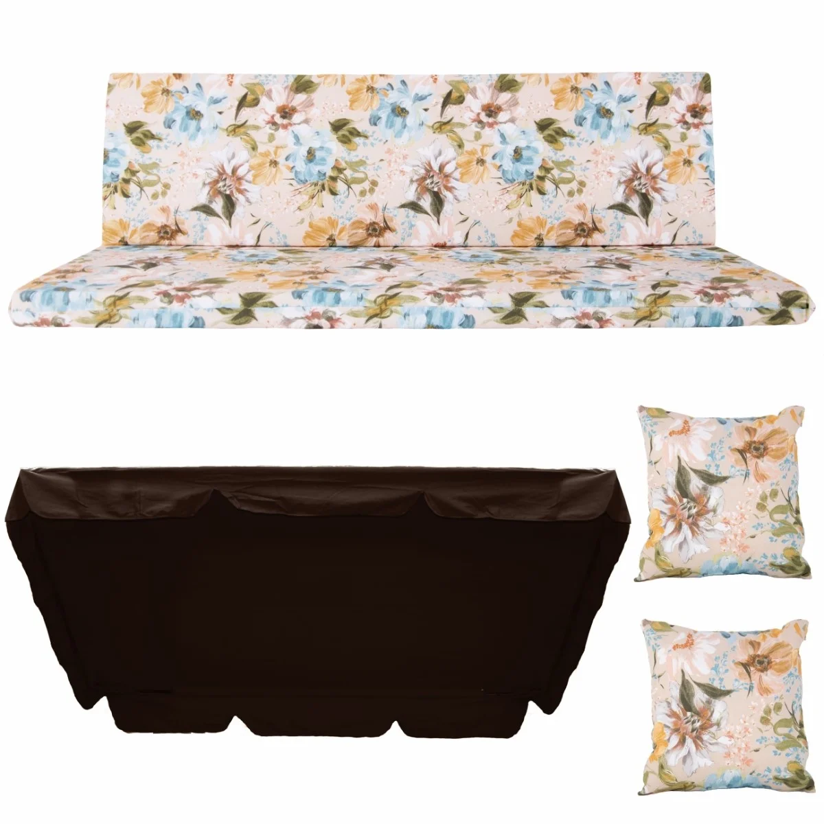 Zestaw TORINO na Huśtawkę Ogrodową Poduchy 150cm + 2 Jaśki + Daszek 120X180.