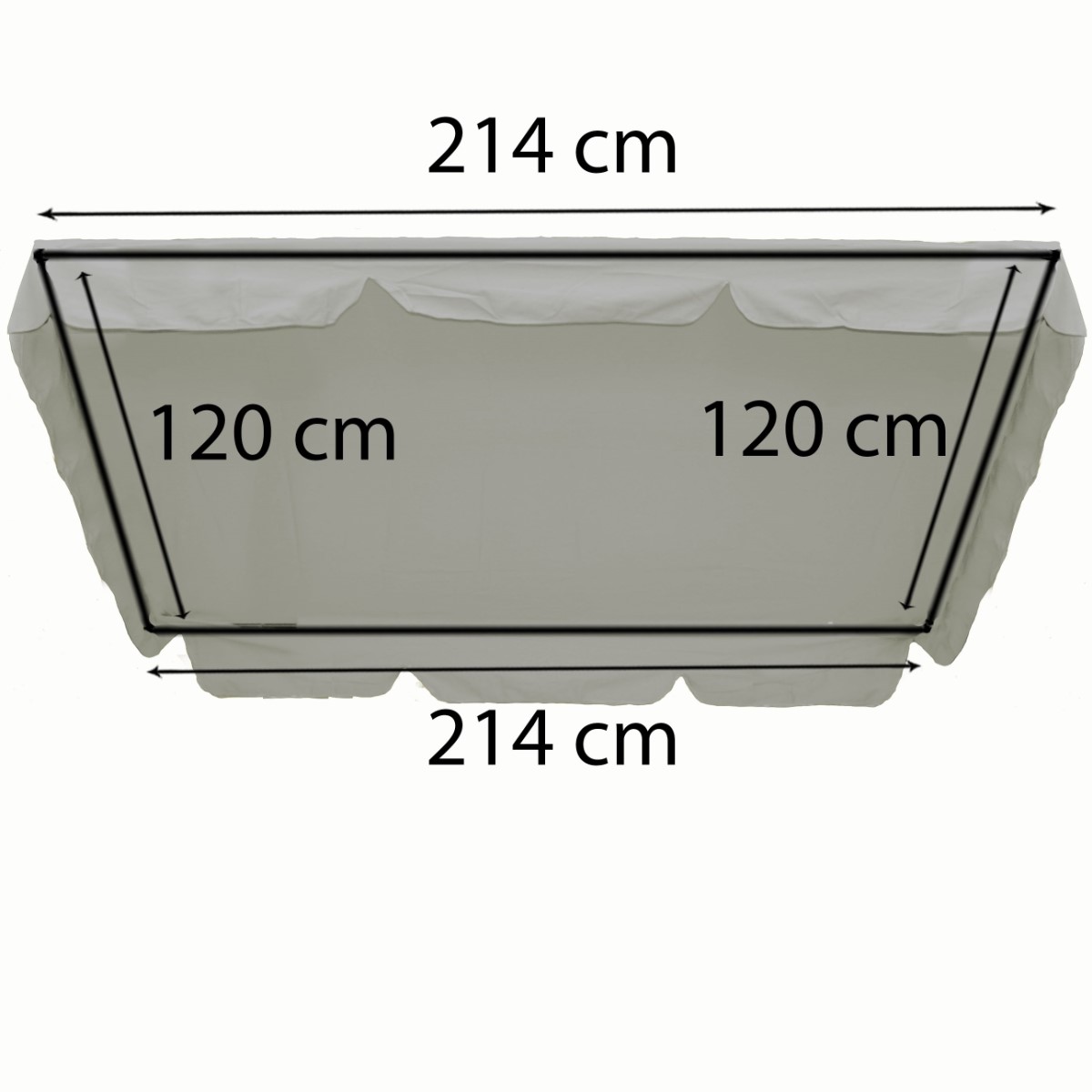 W zestawie również daszek (120x214cm) wykonany z materiału impregnowanego (poliester).